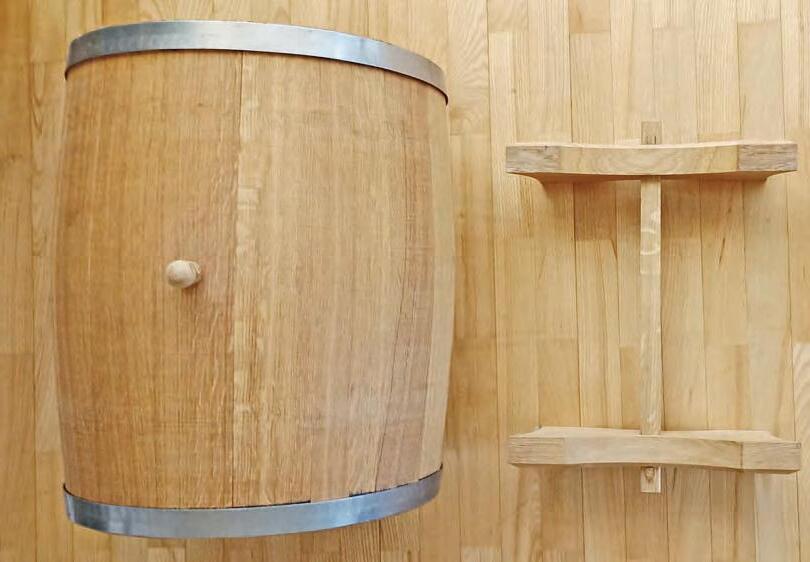 Hier bietet sich Interessierten mit exzellentem Geschmack eine hervorragende Möglichkeit, etwas Dekoratives und zugleich voll Funktionales zu erwerben – einen echten Blickfang, der zu 100 Prozent einsetzbar ist: eines von 50 individuell hergestellten Eichenfässern. Jedes Fass verfügt über ein Fassungsvermögen von 30 Litern. Die Behälter sind in Handarbeit gefertigt und innen gebrannt. Außen erstrahlen die Fässer in Eiche Natur. In wenigen Schritten