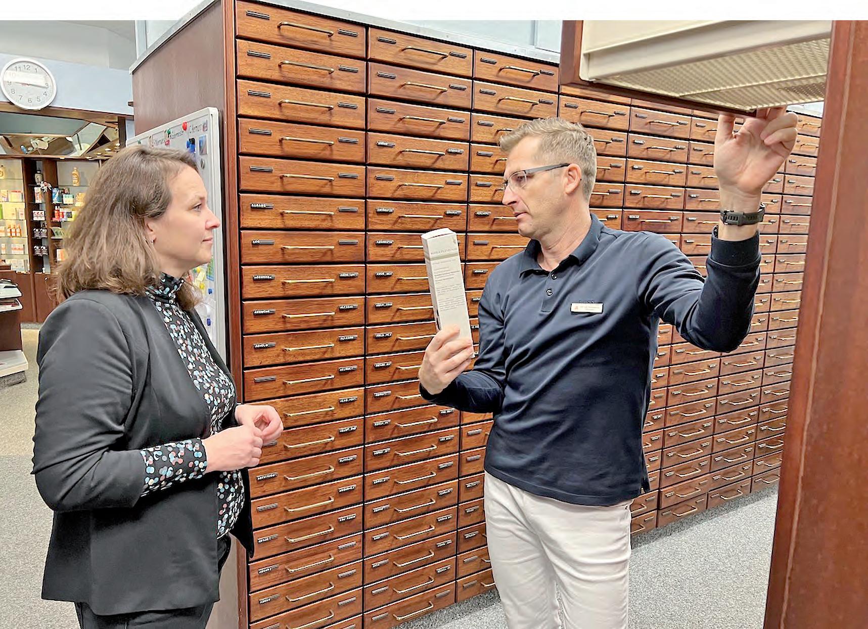 „Das Aufgabenspektrum einer Apotheke geht wirklich weit über das eigentliche und für Außenstehende bekannte Abgeben von Arzneimitteln hinaus. Davon konnte ich mich heute eindrucksvoll überzeugen. Und warum die Apotheke vor Ort so immens wichtig ist, zeigt sich anhand des Kümmerns um jeden Einzelnen. Diese wohnortnahen Strukturen müssen wir unbedingt erhalten“, sichert Nicole Anger dem Apotheker zu.