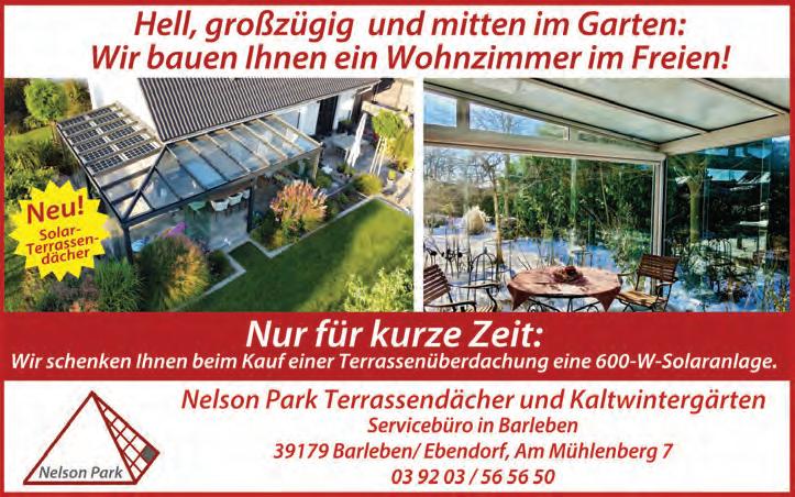 Weitere Infos: Nelson Park Terrassendächer Servicebüro Barleben 39179 Barleben, Am Mühlenberg Tel.: 7 03 92 03 / 56 56 50 www.nelsonpark-td.de