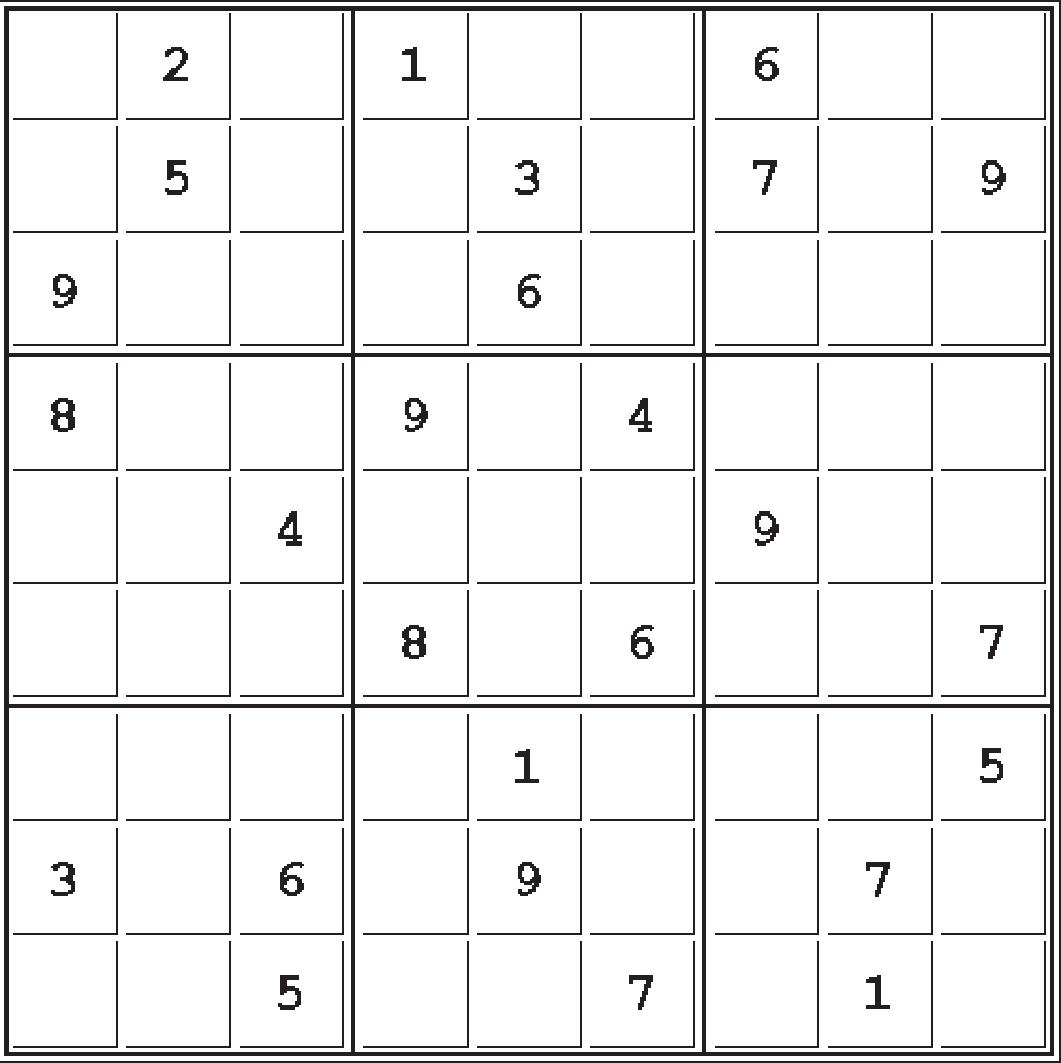 Füllen Sie die leeren Felder so aus, dass in jeder Zeile, in jeder Spalte und in jedem 3-x-3-Kästchen alle Zahlen von 1 bis 9 stehen.