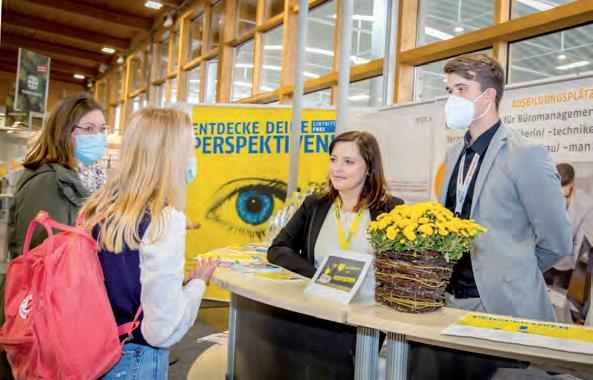 in den Werkstätten, Bewegungsund Schulungsräumen. Im Übungsbüro beispielsweise schilderten Steffi Grützmacher und Lea Seibt, wie ein allgemeiner Büroarbeitstest, kurz ABAT-R, durchgeführt wird und welche Erkenntnisse die Auswertung bringt.