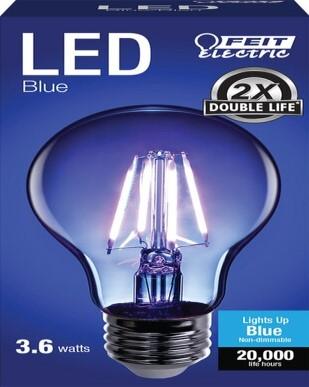 AVAILABLE IN: BLUE, GREEN, ORANGE, RED, AND YELLOW FE-A19/TO/LED