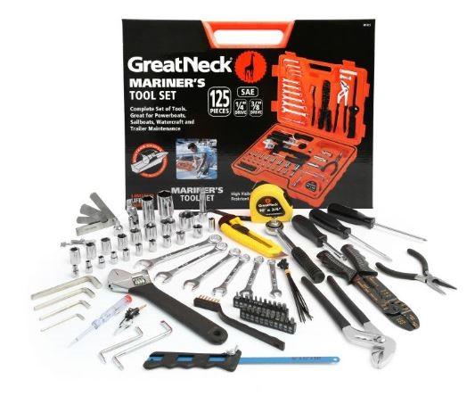 The GreatNeck 125 Piece Mariner's Tool Set is perfect for maintenance on powerboats, sailboats, watercraft and trailers. Chrome plated to resist rust, the tools are stored securely in a high visibility, water resistant case