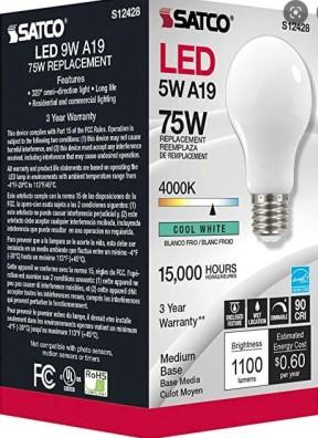 LED SATCO COLORED A19 S14988 S14989 =60W LED CERAMIC ORANGE =60W LED CERAMIC PINK
