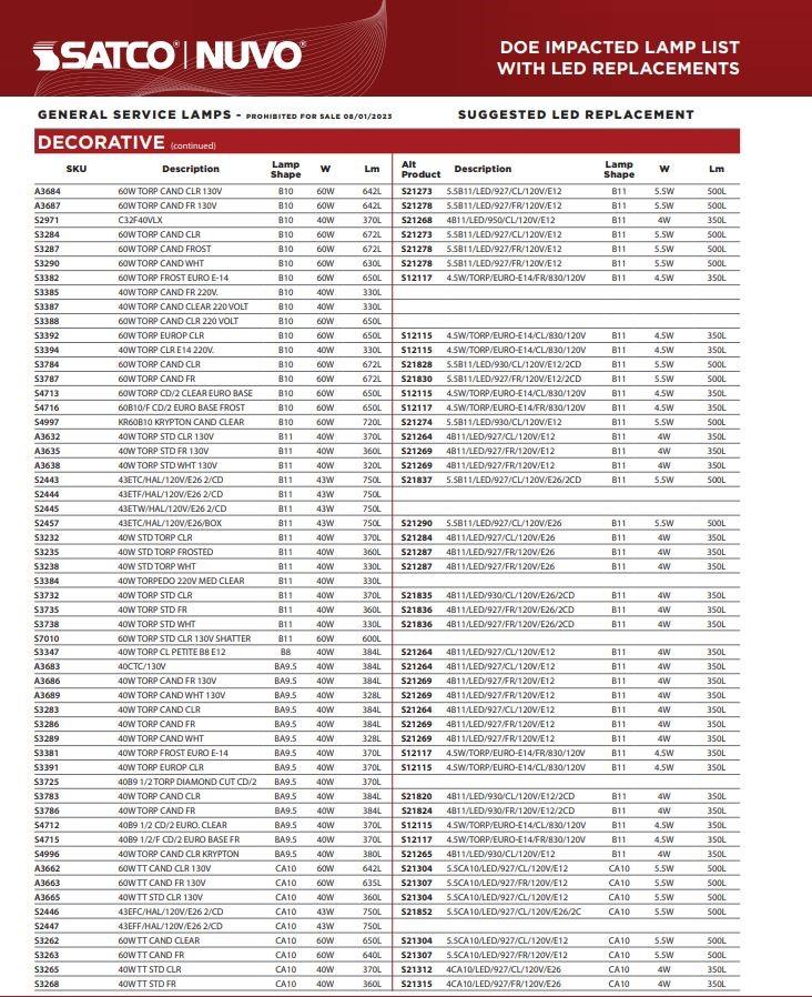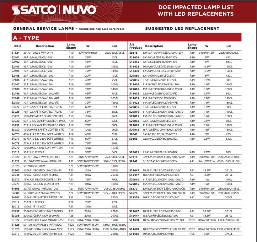 OTHER HIGHER WATTAGE VERSIONS AVAILABLE , ASK YOUR SALEMAN S23141 $46.75