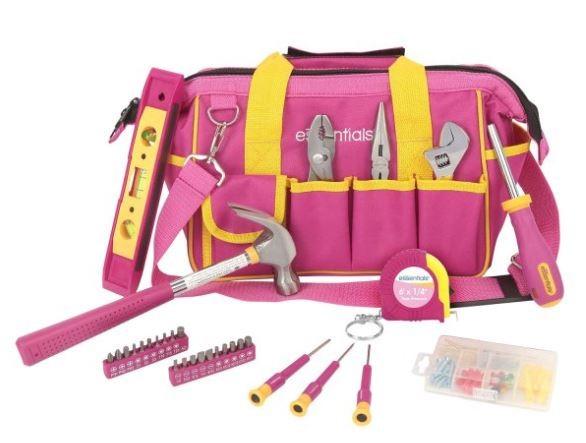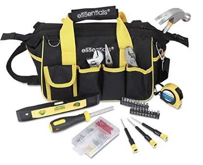 Everyone needs a loaded tool bag around the house. Whether your needs call for a hammer or a measuring tape, this Tool Kit has it all! The Essentials Tool Kit is perfect for every at home need and DIY project. Each tool features ergonomic comfort grip handles, and smaller grip diameters to reduce hand, wrist, and arm fatigue. The Tool Kit comes with an 18 pocket zip-up bag, featuring a shoulder strap for easy carrying. Includes: 6" long nose pliers, 6" slip joint pliers, 6" adjustable wrench, 8 Oz. claw hammer, 9" magnetic torpedo level, 12' x 5/8" tape measure, 3 precision screwdrivers (PHO, PHOO, 2.5 mm), magnetic bit driver, 19 insert bits in holders (including slotted, hex, Phillips, square and star) and 1/4" adapter fastener set.