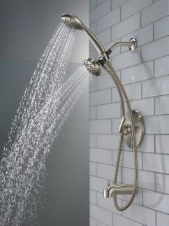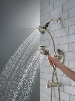 • Soft, rubber Touch-Clean® spray holes allows you to easily wipe away calcium and lime build-up from the spray face of your shower head and hand shower with the touch of a finger.