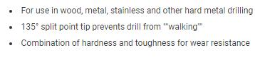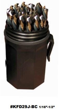 ITEM # DESCRIPTION PACKED LIST PRICE KFD13J-SET 1/16 - 1/4 HSS BLACK & GOLD JOBBER BIT SET METAL CASE 13 PCS 1 $ KFD26J-SET A - Z 26 PIECE BLACK AND GOLD JOBBER LENGTH DRILL BIT SET 1 $ KFD29J-PC 1/16 - 1/2X64THS 29 PIECE BLACK AND GOLD DRILL BIT SET 1 $ DEWEZ1-5 #1-5 CARBON STEEL SCREW EXTRACTOR SET 1 $ DEWEZ1-6 #1-6 CARBON STEEL SCREW EXTRACTOR SET 1 $ D/A21J-SET 1/16 - 3/8 HSSS JOBBER DRILL BIT SET 21 PIECES 1 $ D/A29J-CO-SET 1/16 - 1/2 COBALT STEEL JOBBER DRILL BIT SET 29 PIECES 1 $ D/A29J-SET 1/16 - 1/2 HSS JOBBER DRILL BIT SET 29 PIECES 1 $ DWD15J-SET 1/16 - 1/2X32NDS 15 PIECE HSS JOBBER LENGTH DRILL SET 1 $ DMS71-1040 6 PIECE 6 INCH SPADE BIT SET 3/8” - 1” 1 $ D/A13J-CO-SET 1/16 - 1/4 COBALT STEEL JOBBER DRILL BIT SET 13 PIECES 1 $ D/A13J-P-SET 1/16 - 1/464THS HS POLISHED DRILL SET 1 $ D/A21J-SET 1/16 - 3/8 HSS JOBBER DRILL BIT SET 21 PIECES 1 $ DWD13J-CO-SET 1/16 - 1/4X64THS 13 PIECE COBALT JOBBER LENGTH BIT SET 1 $