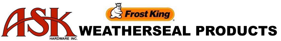 2 FT POLY FOAM - FILLS OR SEALS LARGE OPENINGS - SAVES EXPENSIVE CAULKING ITEM # DESCRIPTION PACKED LIST PRICE OS6H 6 FOAM OUTLET SEALERS 24 $0.78 OSS6H 6 FOAM SWITCH SEALERS 24 $0.78 FOAM OUTLET AND SWITCH SEALERS U.L. FIRE RETARDANT FOAM - EASILY INSTALLED - REDUCES DRAFTS AND HEAT LOSS ITEM # DESCRIPTION PACKED LIST PRICE M13WH V-SEAL 7/8” X 17FT STICK-ON WHITE 12 $3.35 V18WH TUBULAR VINYL 1/2 X 1/4 X 17FT WHITE 12 $3.14 VINYL GASKET/SEAL FOR DOORS AND WINDOWS ITEM # DESCRIPTION PACKED LIST PRICE DDS-1 36” DOOR/WINDOW DRAFT SHOP BROWN 12 $6.95 DS2 36” SINGLE DRAFT STOP - THROW 12 $4.95 DOUBLE/SINGLE DRAFT STOP BLOCKS OUT DRAFTS AND DUST - REDUCES HEAT LOSS - FOR DOORS AND WINDOWS 133