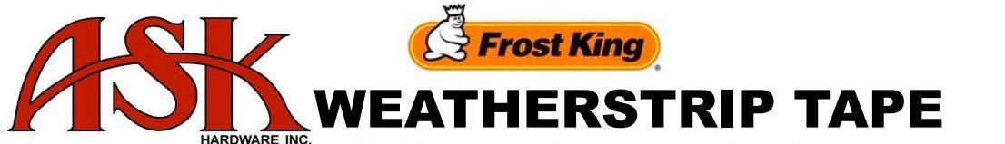 ITEM # DESCRIPTION PACKED LIST PRICE L341H 3/8” X 1/4” X 17FT WHITE FOAM 24 $1.45 L342H 3/4” X 1/4” X 17FT WHITE FOAM 24 $1.95 L343H 1” X 1/4” X 17FT WHITE FOAM 24 $2.95 L344H 1 1/2” X 1/4” X 17FT WHITE FOAM 12 $3.75 L346H 3/4” X 1/2” X 17FT CHARCOAL FOAM 18 $2.65 POLY FOAM WEATHERSTRIP TAPE 1 YEAR - INEXPENSIVE - SELF STICK - HIGH COMPRESSIBLE - FOR INDOOR USE ITEM # DESCRIPTION PACKED LIST PRICE V443H 3/8” X 3/16” X 17FT GREY VINYL 24 $0.99 V449H 3/4” X 3/16” X 17FT GREY VINYL 24 $2.05 V445H 1/2” X 3/8” X 10FT GREY VINYL 24 $1.35 V447H 1 1/4” X 3/16” X 30FT CAMPER MOUNT 12 $4.85 ITEM # DESCRIPTION PACKED LIST PRICE R338H 3/8” X 3/16” X 10FT BLACK RUBBER 24 $0.89 R538H 3/8” X 5/16” X 10FT BLACK RUBBER 24 $1.19 R512H 1/2” X 5/16” X 10FT BLACK RUBBER 24 $1.55 R534H 3/4” X 5/16” X 10FT BLACK RUBBER 24 $1.89 R511H 1” X 5/16” X 10FT BLACK RUBBER 24 $2.69 R738H 3/8” X 7/16” X 10FT BLACK RUBBER 24 $1.45 R734H 3/4” X 7/16” X 10FT BLACK RUBBER 24 $2.40 R516H 1 1/4” X 7/16” X 10FT BLACK RUBBER 12 $3.65 R930H 1/2” X 9/16” X 10FT BLACK RUBBER 24 $2.50 R534WA 3/4” X 5/16” X 10FT WHITE RUBBER 12 $2.30 ITEM # DESCRIPTION PACKED LIST PRICE V23WA 3/8” X 1/8” X 17FT NARROW GAP WHITE 12 $3.15 V25GA 3/8” X 1/4” X 17FT D-SECTION MED GREY 12 $3.75 V25WA 3/8” X 1/4” X 17FT D-SECTION MED WHITE 12 $3.75 V27GA 1/2” X 5/16” X 10FT RIBBED WIDE GAP GREY 12 $5.15 V27WA 1/2” X 5/16” X 10FT RIBBED WIDE GAP WHITE 12 $5.15 VINYL FOAM WEATHERSTRIP TAPE 3 YEAR - SELF STICK - MEDIUM COMPRESSION - WATER RESISTANT - INDOOR OR OUT EPDM X-TREME RUBBER FOAM WEATHERSTRIP TAPE 10 YEAR GURANTEE - WILL NOT HARDEN, CRACK OR FREEZE IN 40 BELOW TEMP RUBBER FOAM WEATHERSTRIP TAPE 5 YEAR - DURABLE - SELF STICK - WEATHERSEAL/GASKET/VIBRATION ABSORBER 130