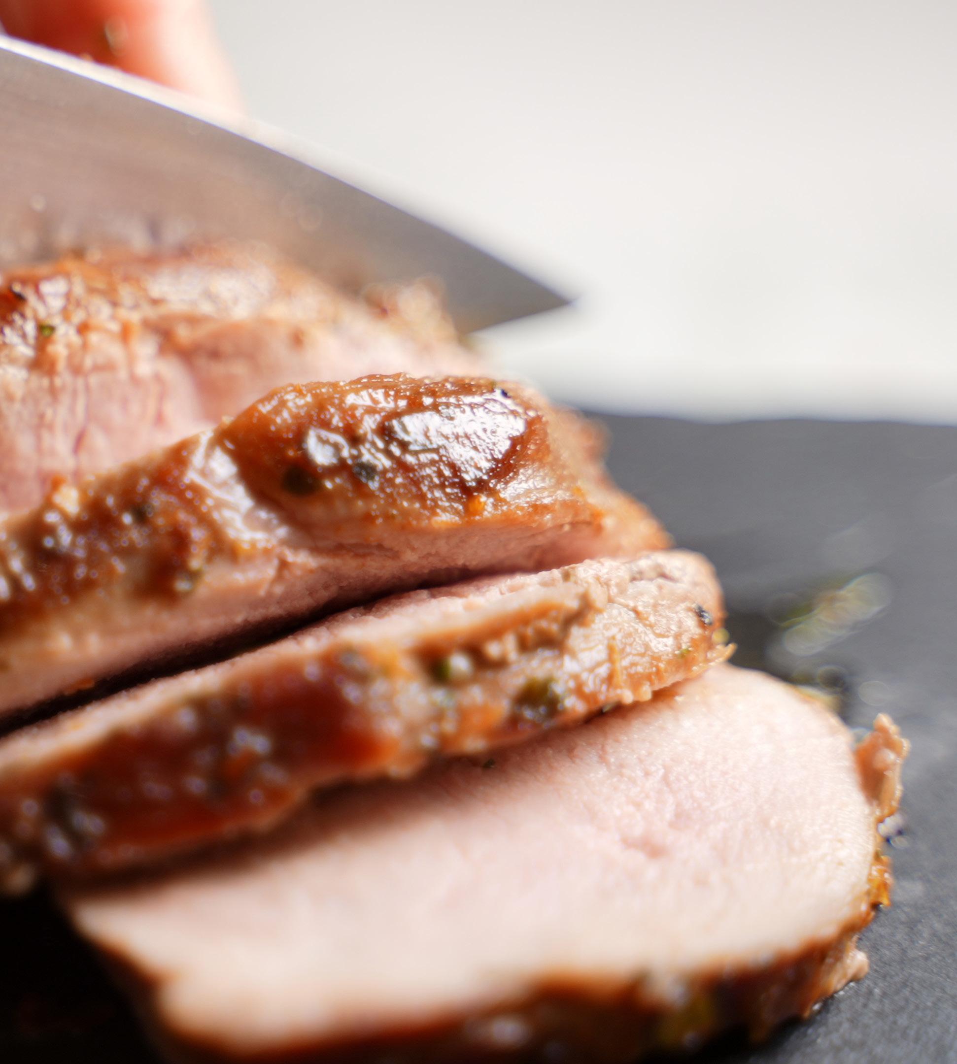 Veal fillet poached in Mediterranean herbs with radicchio risotto and braised root vegetables