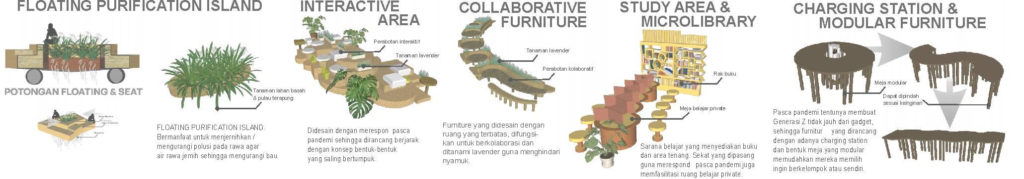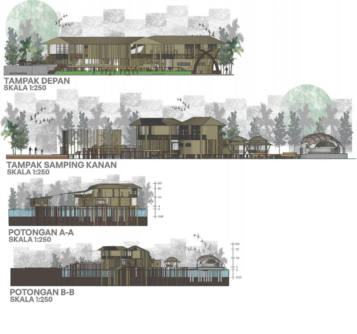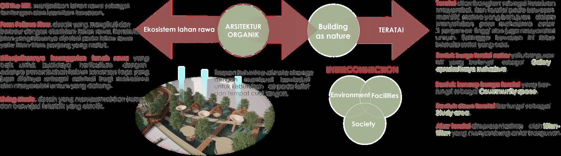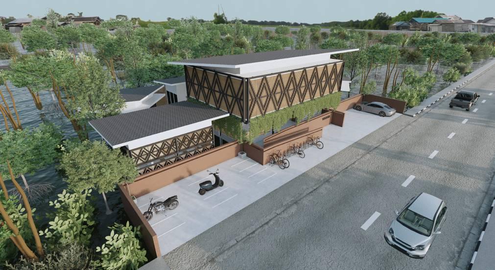 Beradaptasi terhadap lingkungan khususnya Lahan Basah berupa rawa yang kemudian difungsikansebagaisebuahCoworkingSpaceyangmeresponlingkungansekitar.