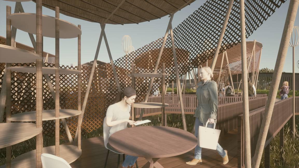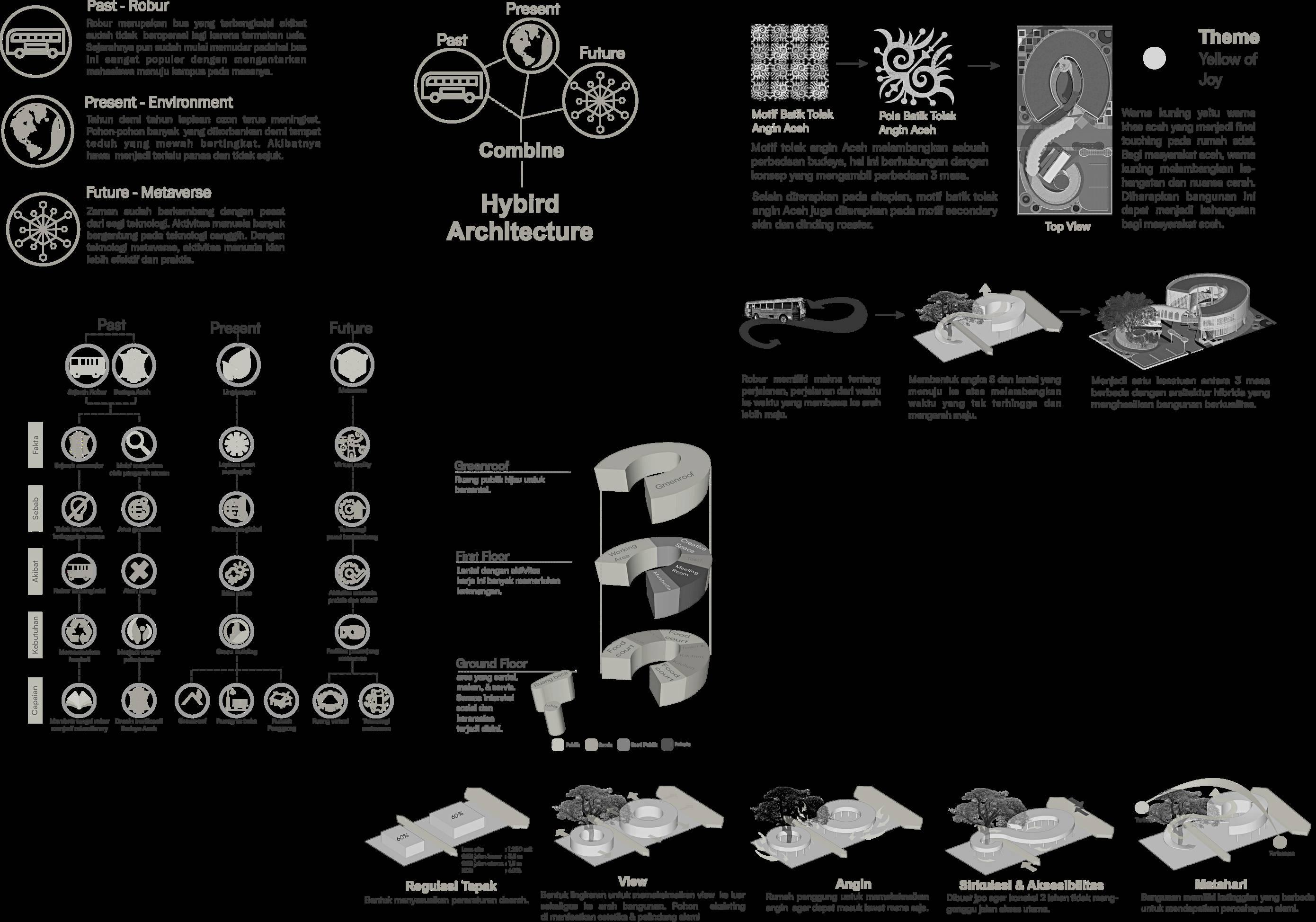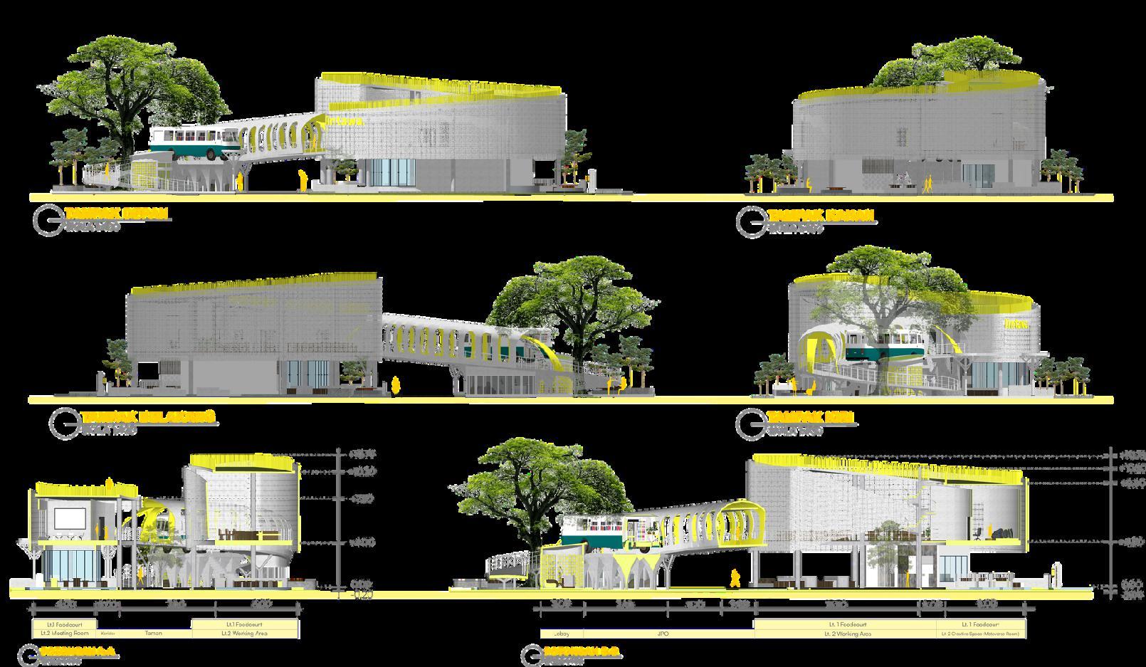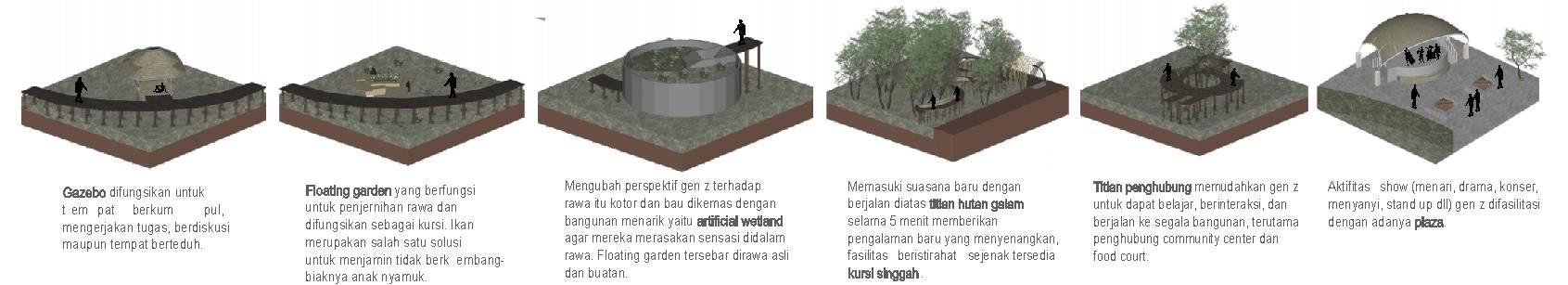 Beradaptasi terhadap lingkungan khususnya Lahan Basah berupa rawa yang kemudian difungsikansebagaisebuahCoworkingSpaceyangmeresponlingkungansekitar.