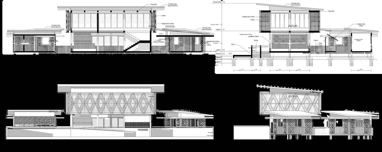 Menggunakan material untuk keperluan konstruksi dan juga elemen fasad seperti galam yangbanyakditemukantumbuhdiarearawa.