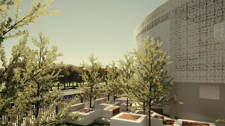 Desain bangunan yang tidak lupa menyisipkan Unsur Kebudayaan Banjar, Desain ini diterapkan pada fasad bangunan yang terinspirasi dari motif Sasirangan yang memiliki berbagaimacamfilosofi.