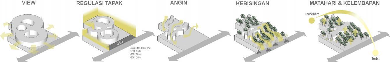 Menerapkan konsep Open Space yang dapat memaksimalkan penggunaan cahaya alami dan juga dapat memanfaatkan sistem Cross Ventilation sebagai penghawaan pada bangunan.