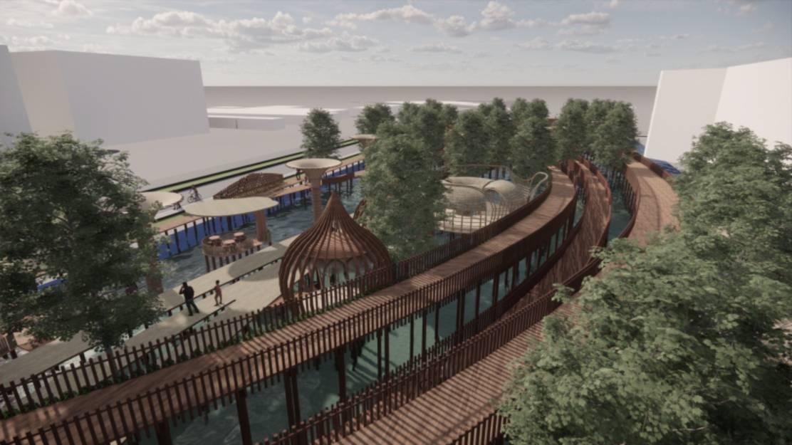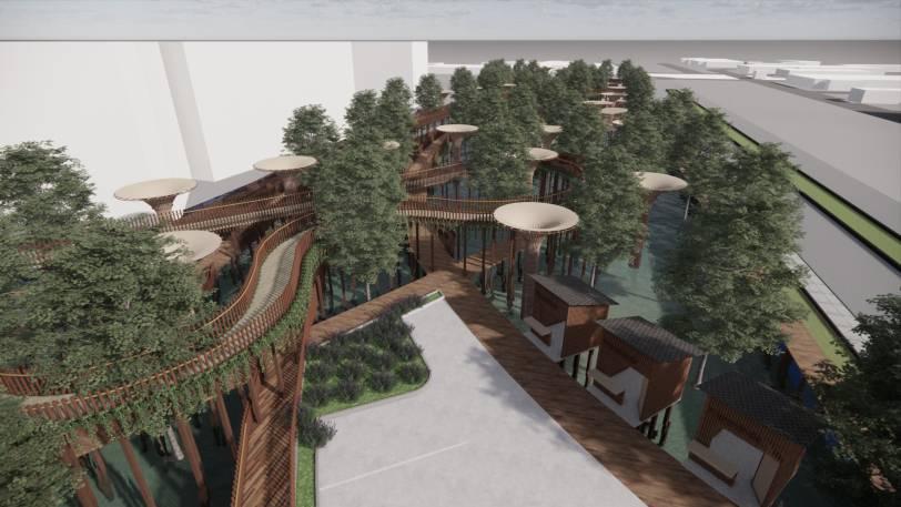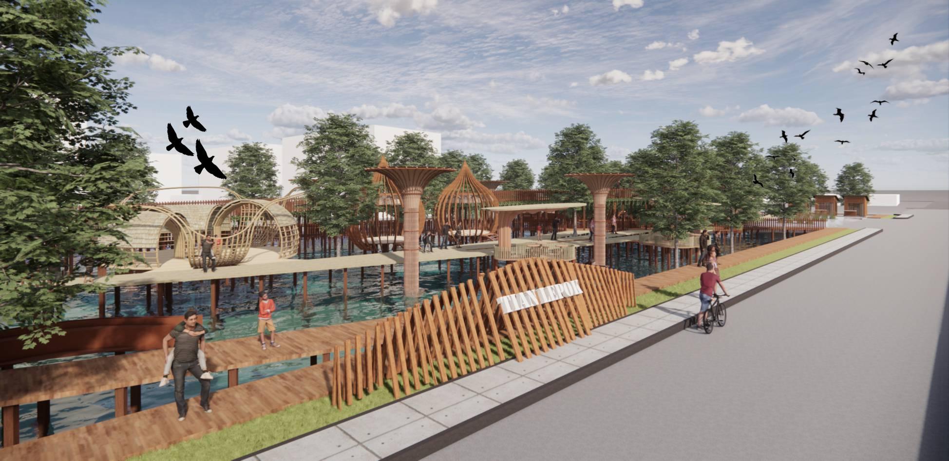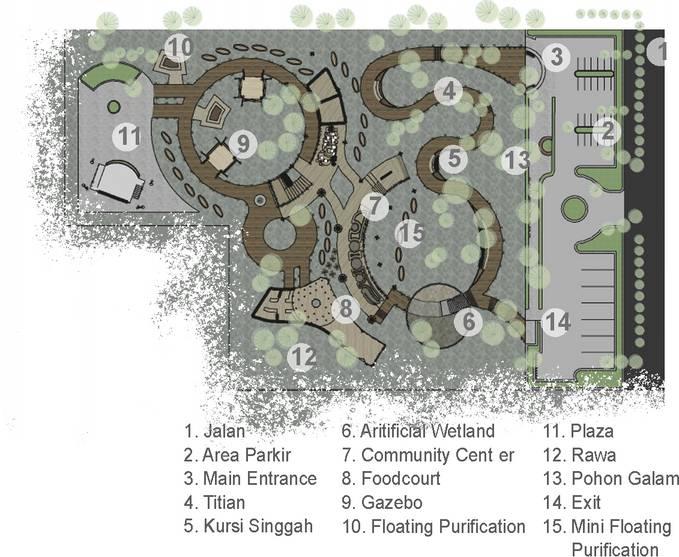Banjar dari tanaman eceng gondok yang akan menjadi identitas kawasan. Kepanjangan dari kata “ilung” dari judul konsepiniyaituIlmuPengetahuan.