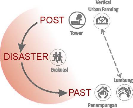 emergency bermaksud memudahkan pencapaian masyarakat. Perwujudan KonsepKindaiberupashelterdengansiklus post disaster-past yang menghasilkan fungsi Farming community, rekreasi ,evakuasidantempatpenampungan