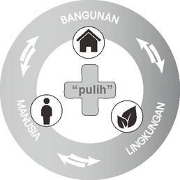 Pencapaiannya dengan memulihkan 3 objek, yaitu manusia,lingkungan,bangunan denganmenghubungkanketiga objek.
