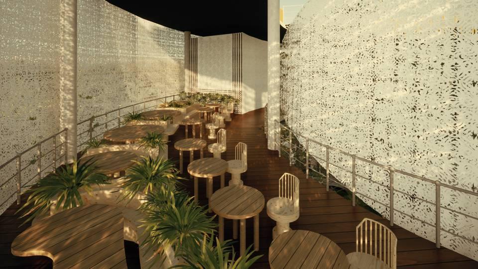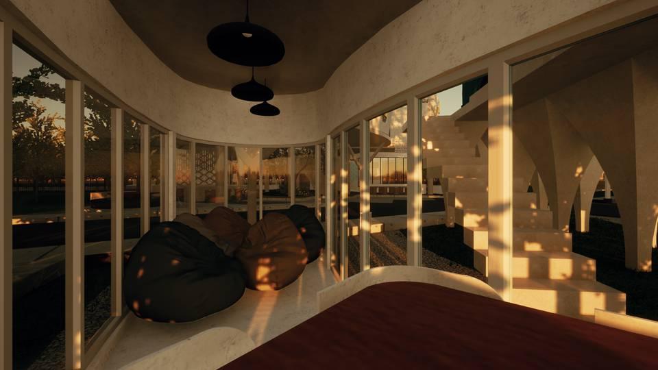 Menciptakan ruangan-ruangan yang dapat menarik perhatian dan memfasilitasi pengunjung (Gen z) yang suka bersosialisasi dan mencari tempat yang mem perhatikan estetika untuk bekerja/belajar diluar. Memberikan suasana yang tidak membosankan agar pengunjungbetahberadadiareaperpustakaan.
