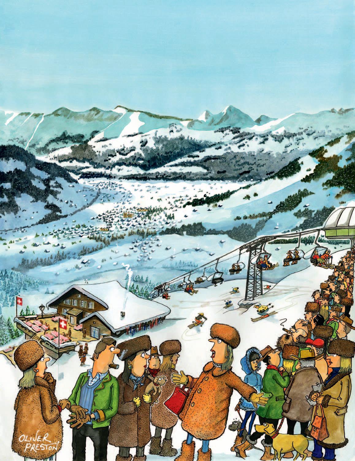 | CARTOON: © Oliver Preston | GSTAAD SAANENLAND TOURISMUS: Tél. +41 (0)33