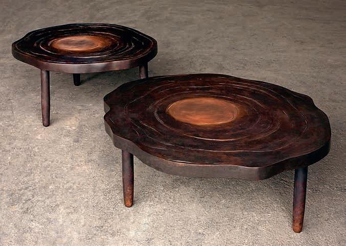 ▲ a Pair o F bronze co FFee tables with a “ wave” o F dark brown Patina