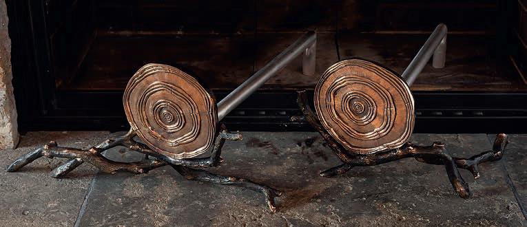 F stainless steel andirons For FirePlace with “ tree branch and lo G” desi Gn in bronze