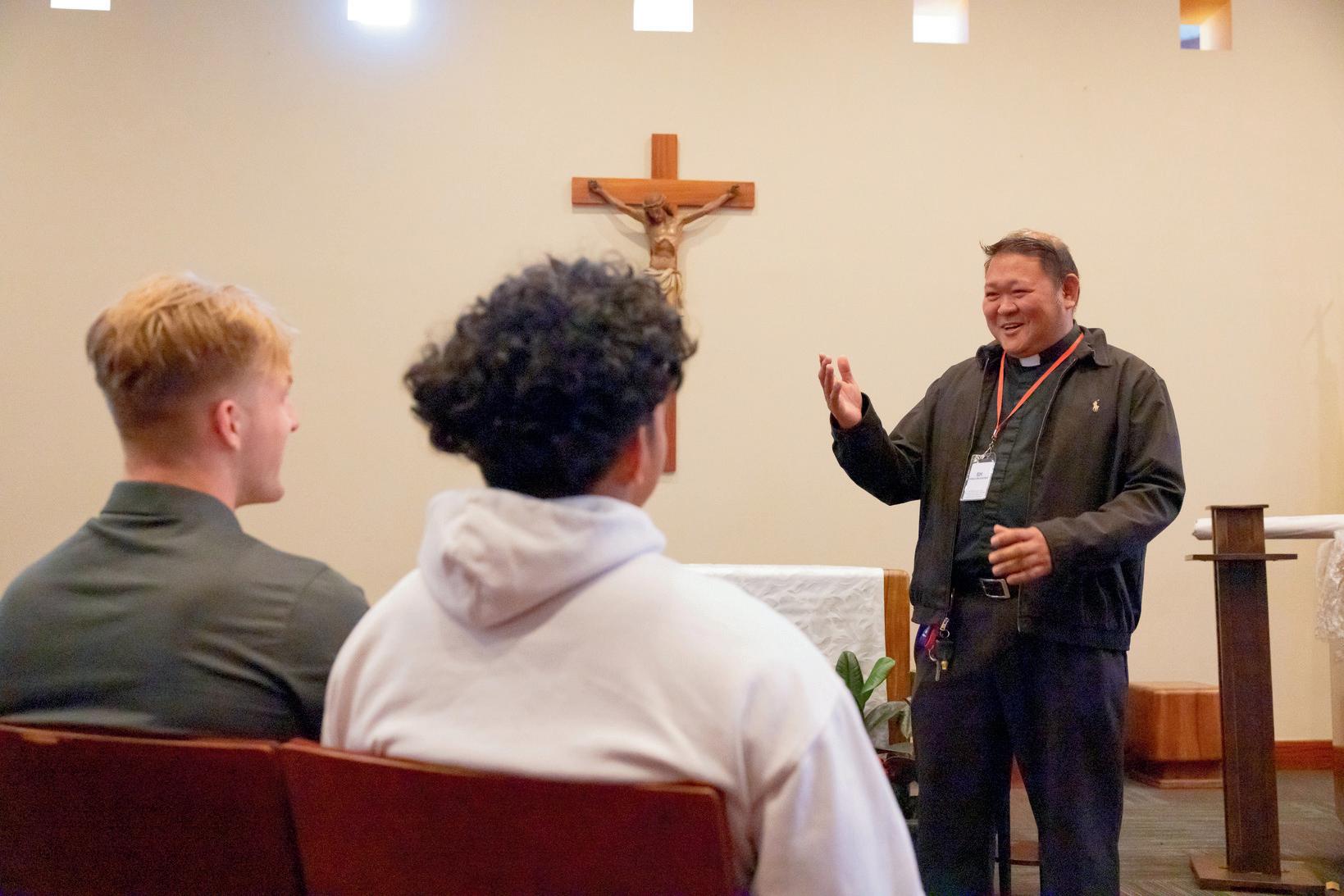 During his time on campus, Father Mark consistently sought to make his messages relatable to the lives of high school students, especially with his homilies at All School Masses. Whether reflecting on the Gospel or sharing personal stories, including his pilgrimage along the Camino de Santiago, he was always honest and humble. Father Mark often spoke of Mary, our Patroness, and encouraged our Monarchs to look to her example in challenging times. His joyful presence at retreats, reconciliation days, and prayer services for athletic teams and student groups made him a trusted and familiar figure to all.