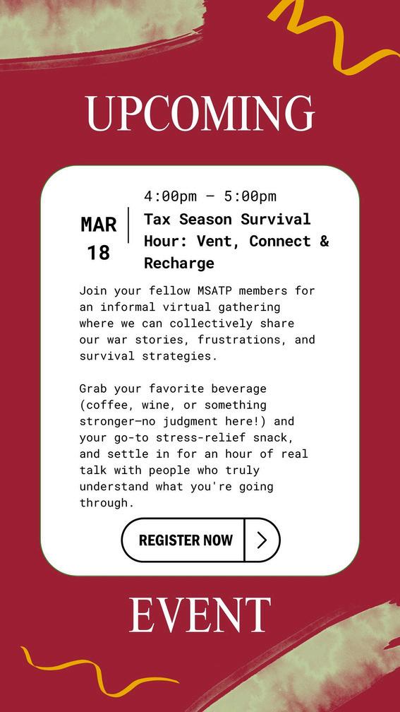 As you navigate deadlines, client questions, and everything that comes with tax season, I hope you feel supported, confident, and connected MSATP is advocating for you, building for the future, and strengthening the professional community that surroundsyou