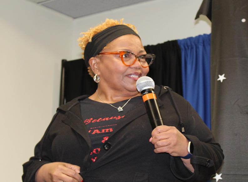 Student holds Tei Street’s book. Tei Streets speaks to delegation.