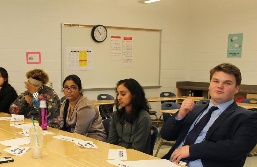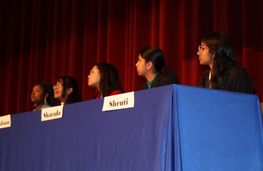 Candidates each had 5 minutes to give their opening statements and then had a Q & A session moderated by chair and president, Maja Durkovic. Students submitted questions through a Google Form that were then randomly selected and asked to each candidate. Questions ranged from experience, time management, to a crowd favorite, “Who would you vote for if you were a delegate?”, which definitely got people talking. After the last of their questions and closing remarks, delegates were dismissed for lunch where candidates were able to campaign..