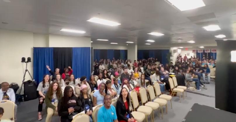 Known by her motto “The “Amazing” Tei Street”, motivational speaker, Tei Street, provided an amazing closing keynote for Convention. She used stories from her childhood to describe important lessons she learned while growing up. Before her inspiring speech, she spent the first two days of Convention, leading workshops and icebreakers for delegates. Once it came time for her keynote, many delegates had already spoken with her and grown fond of her vivacious personality. During her presentation, she recalled the time she was dared by her best friends to go skydiving. It was during this scary experience, that she was able to find a voice inside of her that had been silenced for so many years. She stressed the importance of realizing the power that the student voice holds and the impact that it can have.