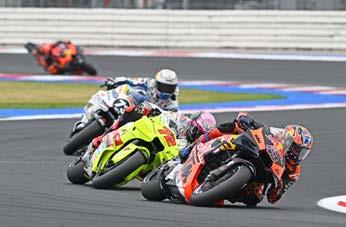 When the lights went out, the 23-yearold stuck to the Ferrari’s gearbox before gradually losing touch as his Medium tyres degraded and pitting on Lap 15. Rejoining with Leclerc in his sights, both on fresh Hard tyres, 30 of the most intense laps of the season soon played out.