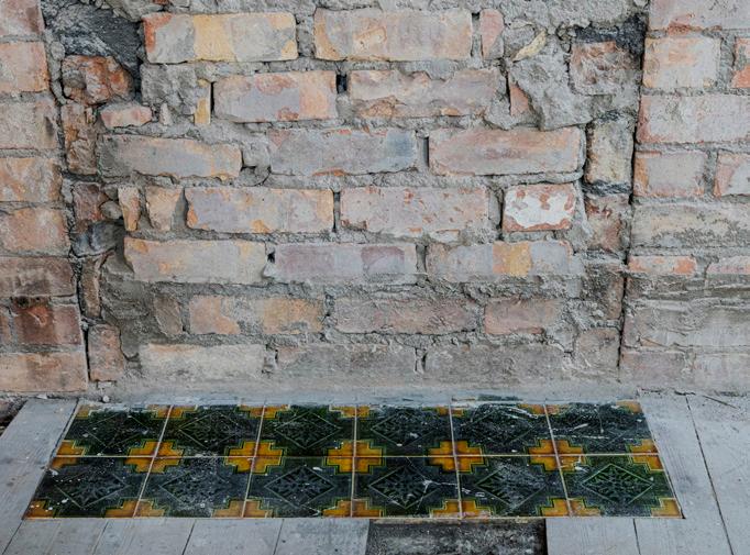 • Floor – Timber floorboards spanning east-west on timber joists introduced at time of construction of YMCA building. Although fireplaces had been removed from the east and west walls, encaustic vitrified tiled hearths survived (52. jpg ‘tiled hearth’ 57.jpg ‘tiled hearth’).
