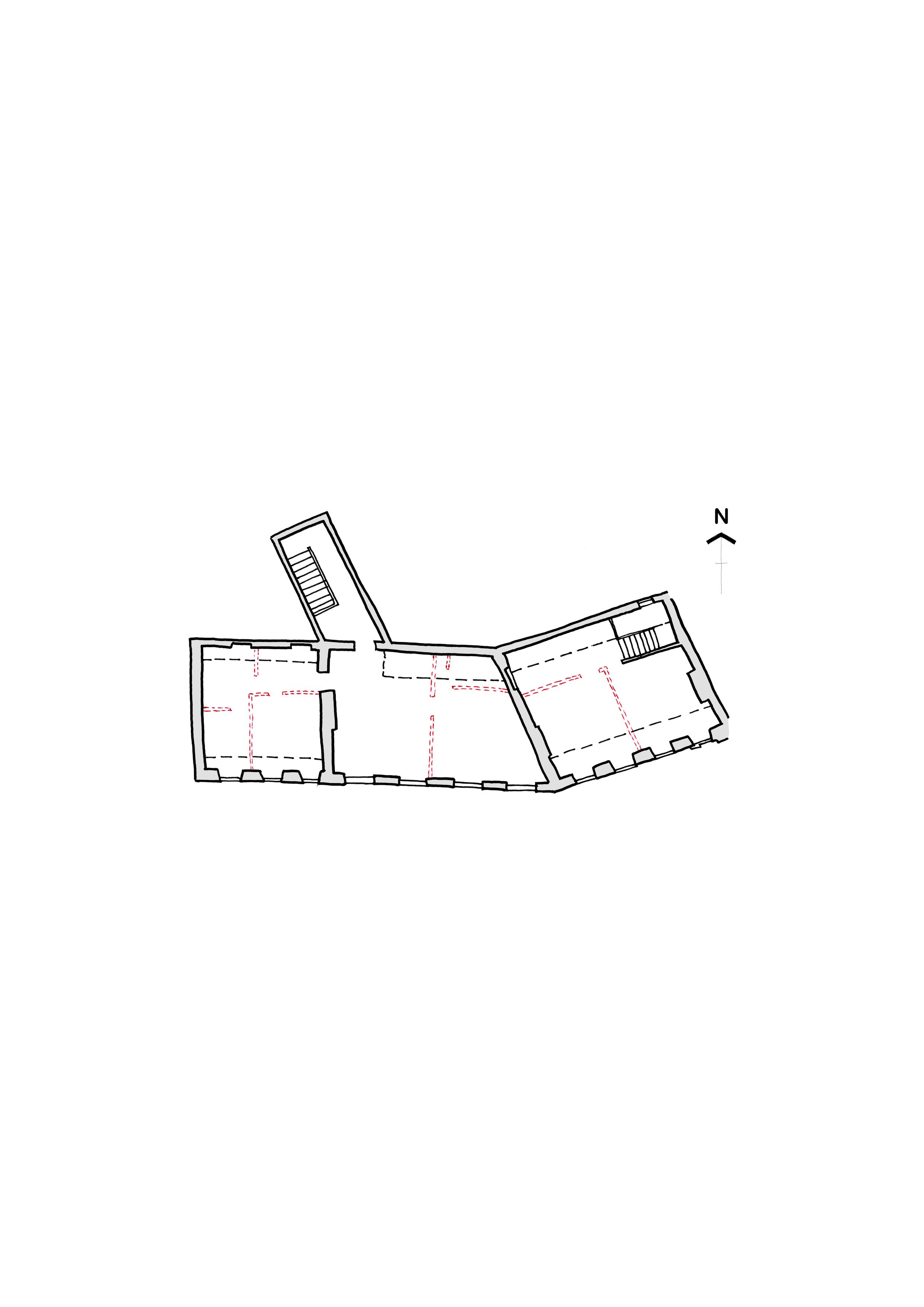 • Stairwell wall – This half-brick wall which presumably was introduced at the same time as the staircase and the new