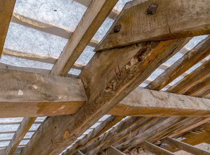 • Ceiling – Original timber ceiling joists spanning north/ south survived displaying evidence of lime-based lath and plaster which had previously been removed.
