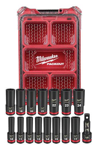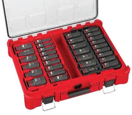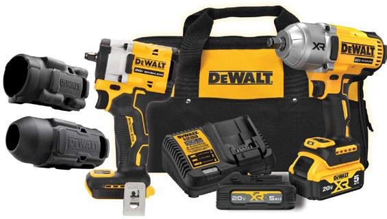 1/2” Impact Wrench has up to 1400 ft-lbs. of breakaway torque | 3/8” Impact Wrench has up to 450 ft-lbs. of breakaway torque | Includes POWERSTACK 5Ah Battery, 20V 5Ah Battery, (2) Rubber Boots, Charger, Kit Bag