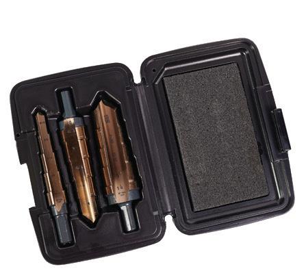 Delivers up to 15X the life in stainless and up to 1000 holes in mild steel | Rapid Strike tip provides 2X faster starts in stainless | Includes: Step Drill #1 (1/8”-1/2”), Step Drill #4 (3/167/8”), Step Drill #9 (7/8-1-1/8”)