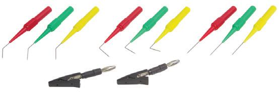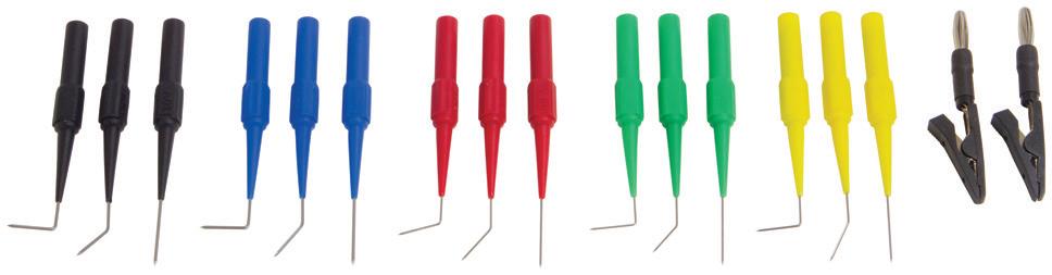 Use to back probe harness connectors and more | 2mm female connection fits most standard probes | Straight, 45°, and 90° probes in .027” and .040” diameters | Test up to 30 volts | 7”-8” Long | Compatible with 21200 Clamp Probes
