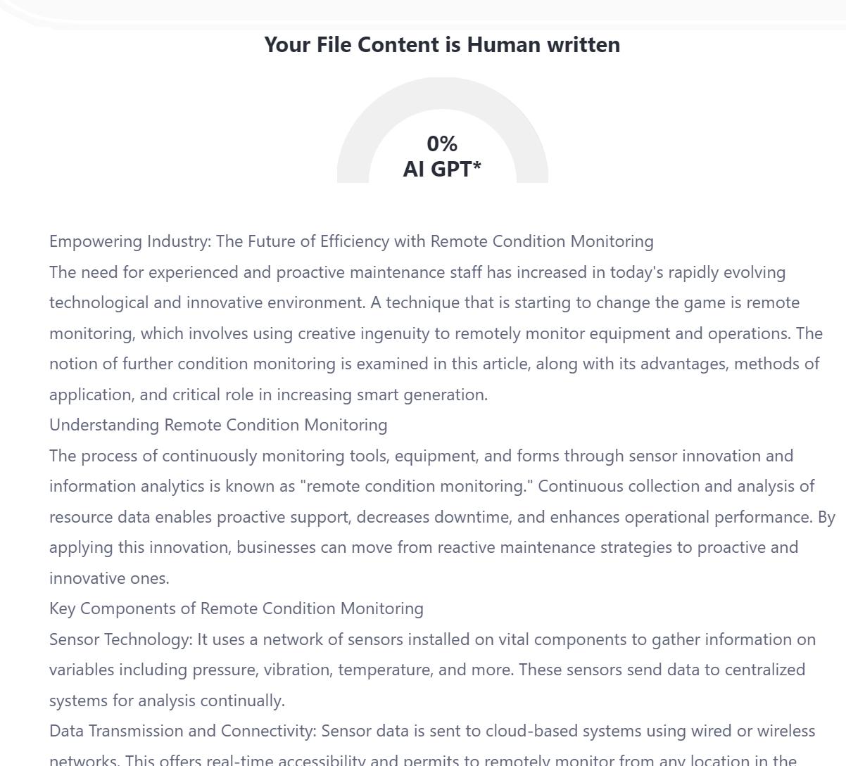 The need for experienced and proactive maintenance staff has increased in today's rapidly evolving technological and innovative environment. A technique that is starting to change the game is remote monitoring, which involves using creative ingenuity to remotely monitor equipment and operations. The notionoffurtherconditionmonitoringisexaminedinthisarticle, along with its advantages, methods of application, and critical role in increasing smart generation.