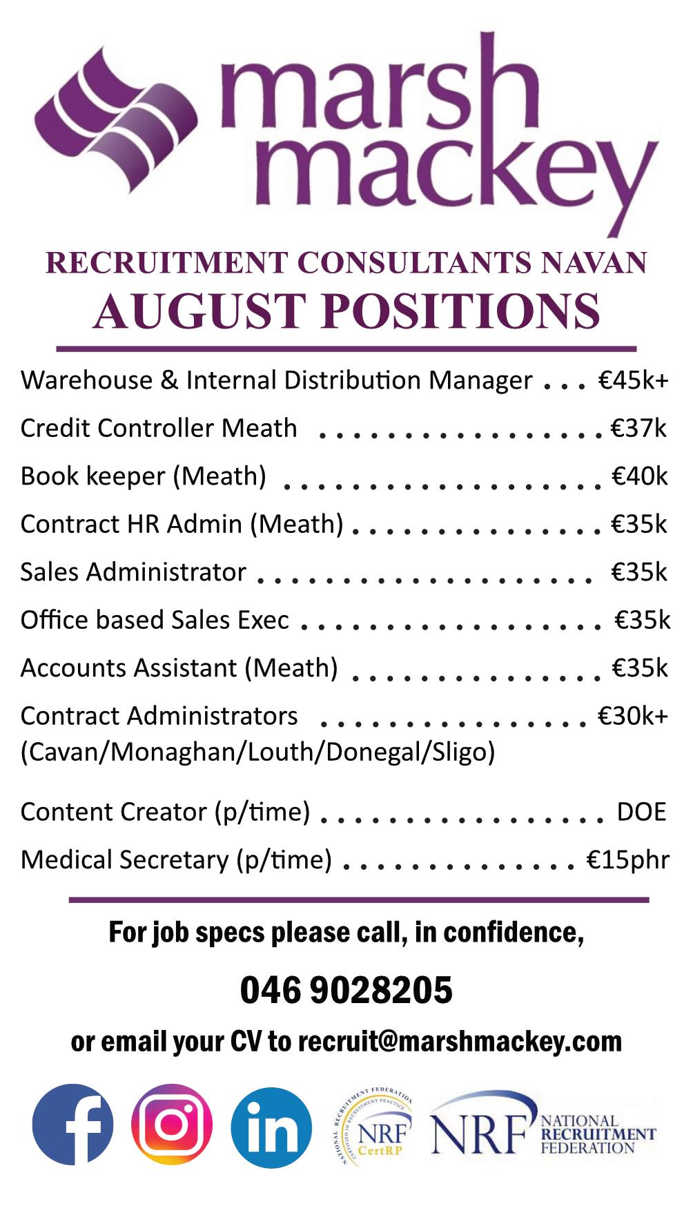 Wed, 13th August 12.30pm - 2.30pm Navan