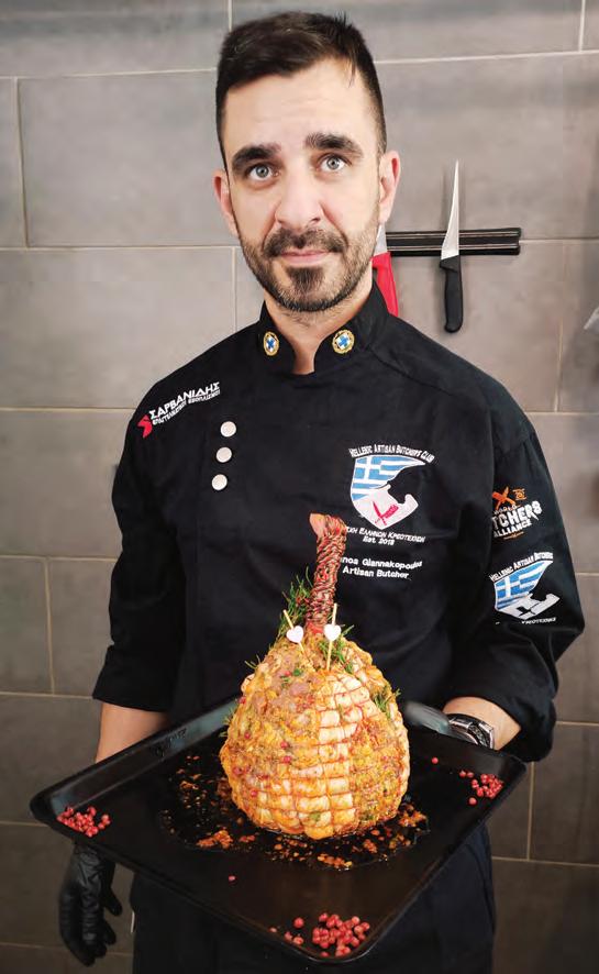 84 | MEAT PLACE κ. Θάνος Γιαννακόπουλος είναι γεν νημένος στην Αθηνά. Είναι 2ης γε νιάς κρεοπώλης, έχοντας μεγαλώσει όλα αυτά τα χρόνια μέσα στο κατάστημα του πα τέρα του. Ήταν και παραμένει εργαζόμενος στην οικο γενειακή επιχείρηση -η οποία ιδρύθηκε το 1987στην περιοχή του Ζωγράφου. Η επιχείρηση πέ ρασε στα χέρια του το 2011 και από τότε λειτουρ γεί υπό τη δική του διεύθυνση. Με την προσωπική εργασία, την ποιότητα των προϊόντων, καθώς και με τις υπηρεσίες που προ σφέρει στον χώρο της διάθεσης κρεάτων και των συνοδευτικών προϊόντων delicatessen, έχει κατα φέρει να παρέχει στους πελάτες του μια πολύ με γάλη γκάμα επιλογών. Σύμφωνα με τα όσα ανέφερε ο κ. Γιαννακόπου λος στο MEAT PLACE, είναι Μέλος της Λέσχης Ελλήνων Κρεοτεχνών από το 2018 και θεωρεί με γάλη τιμή για τον ίδιο το ότι ανήκει σε αυτήν την υπέροχη οικογένεια. Τέλος, δηλώνει ότι στην προσπάθεια του να βελτιώσει τις επαγγελματικές του γνώσεις και δε ξιότητες, τα τελευταία 10 χρόνια παρακολουθεί ανελλιπώς σεμινάρια και ημερίδες πάνω στο αντι κείμενό του. M Ο ΣΥΝΤΑΓΗ ΛΕΣΧΗ ΕΛΛΗΝΩΝ ΚΡΕΟΤΕΧΝΩΝ «Xειροβομβίδα»: Μπούτι γαλοπούλας γεμιστό Θάνος Γιαννακόπουλος Ιδιοκτήτης κρεοπωλείου στου Ζωγράφου 2ης Γενιάς Κρεοπώλης Μέλος της Λέσχης Ελλήνων Κρεοτεχνών