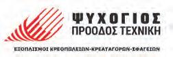 ΨΥΧΟΓΙΟΣ ΠΡΟΟΔΟΣ ΤΕΧΝΙΚΗ Εξοπλισμοί κρεοπωλείων, κρεαταγορών, σφαγείων, μηχανές επεξεργασίας κρέατος, αναλώσιμα Λ.Δημοκρατίας 70 & Ανεξαρτησίας, Ασπρόπυργος Τ/F: 2105577930 • vpsi@otenet.gr • www.psihogios-proodos-texniki.gr