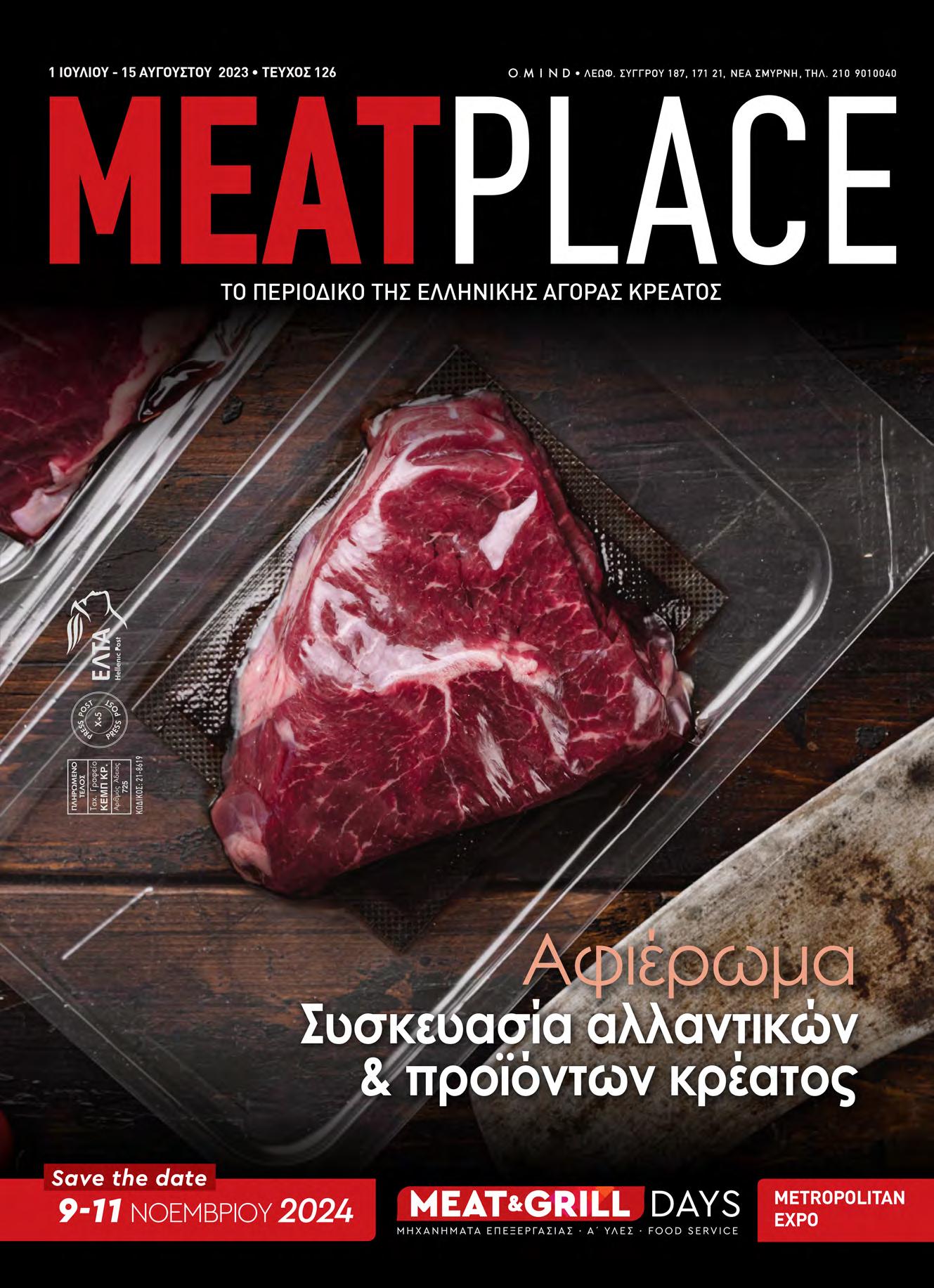 Παραγωγή: O.MIND Creatives Συνδρομές εσωτερικού: 1 έτος (8 τεύχη) 30 € 2 έτη (16 τεύχη) 50 € Συνδρομές εξωτερικού: Ευρώπη/Κύπρος 1 έτος (8 τεύχη) 80 € Άλλες χώρες 1 έτος (8 τεύχη) 100 € MEAT PLACE • ΤΕΥΧΟΣ 126 • 1 ΙΟΥΛΙΟΥ - 15 ΑΥΓΟΥΣΤΟΥ 2023
