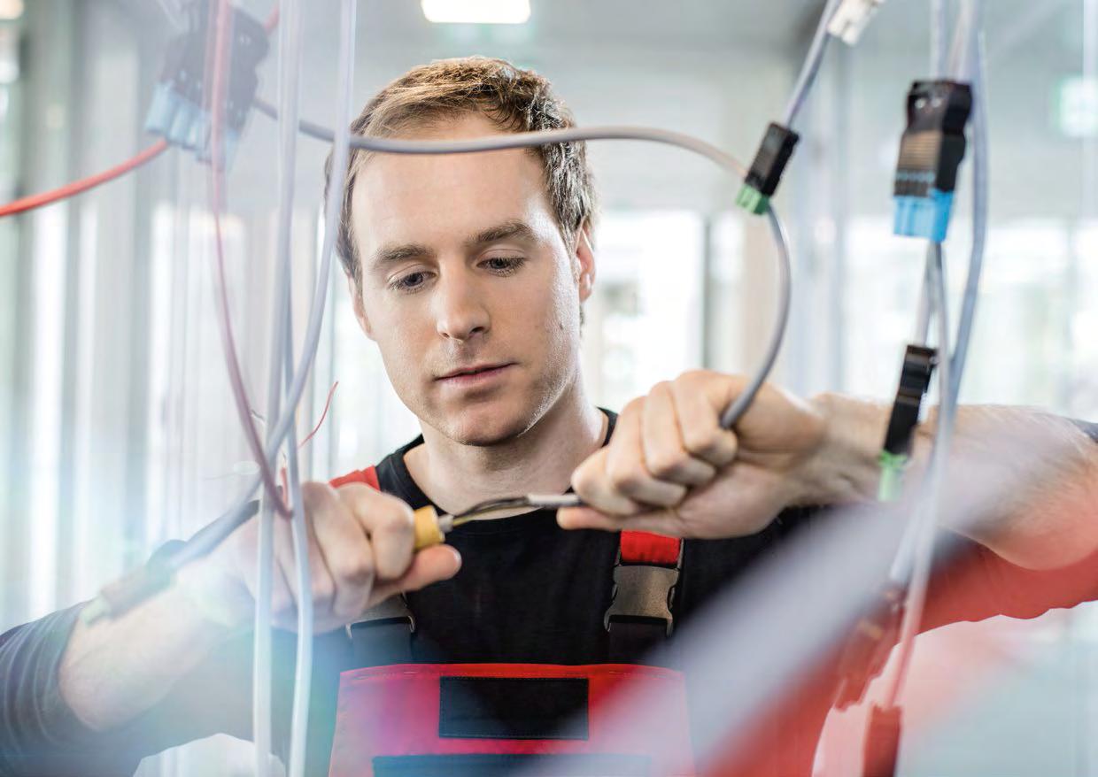 used directly on moving parts or in hermetically sealed environments, for example to measure the flow, pressure and temperature of liquids or gases. Above all, companies save themselves time-consuming and, especially in the industrial environ ment, cost-intensive cabling.