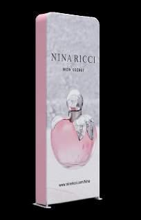 Nytt sortiment av flexibla väggar med elastiskt tyg över aluminiumram. Lätta att både montera och transportera.