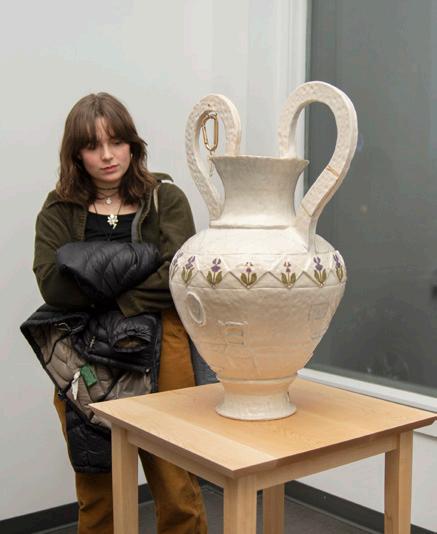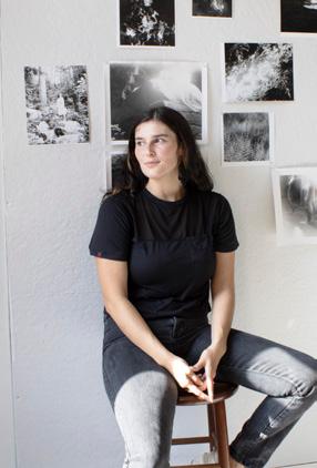 by using the proceeds of her art to support the MECA&D Artists of Promise Scholarship. Dylan Hausthor ’15, in turn, reflects on ways their work challenges traditional notions of fact and fiction, blending mysticism and parafiction to explore deeper cultural truths. They also argue that as a photographer, the lens shouldn’t be seen as an impartial recorder of reality, rather, it shapes and distorts perceptions in ways that can have powerful, even dangerous, consequences.