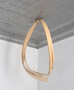 The front gallery featured Attean’s work, which combined a photo installation blended with a natural object sculpture. “All of the materials I used in the sculpture are sourced from Sipayik, where my grandmother and my mom are from. It’s based on this fishing weir that I remember seeing as a child. It reminds me of my grandfather, who I never met. He would work on these fishing weirs out there, and it was his way of sustaining life and living.”