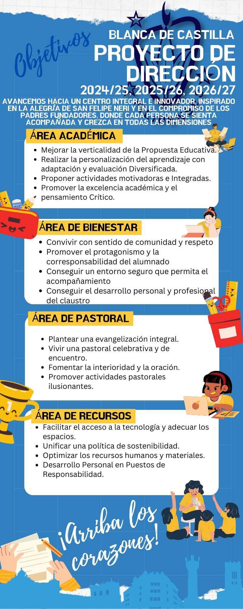 El Plan Estratégico del Colegio Blanca de Castillas 2024-2027 está formado por 4 áreas estratégicas, las cuales quedarán definidas de la siguiente manera: