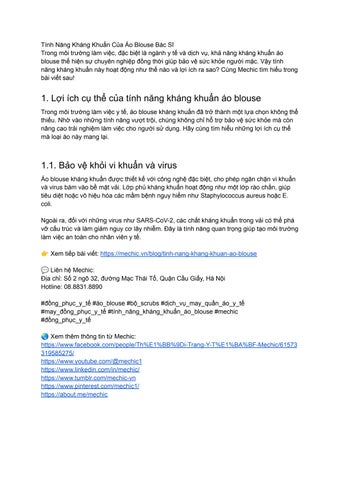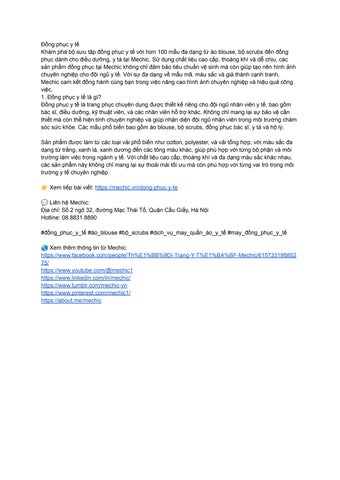"MECHIC là một thương hiệu đồng phục y tế đầy tiềm năng, chuyên cung cấp các sản phẩm như áo blouse, bộ scrub, phục vụ nhu cầu bảo hộ và thẩm mỹ cho các bệnh viện và phòng khám. Mặc dù mới được thành lập, MECHIC đã nhanh chóng khẳng định được vị thế của mình trong ngành, không chỉ ở thị trường trong nước mà còn vươn tầm quốc tế, ghi dấu ấn mạnh mẽ trong lĩnh vực may mặc quần áo y tế. Các sản phẩm đồng phục nổi bật tại MECHIC như đồng phục bác sĩ, đồng phục y tá, đồng phục hộ lý, áo blouse, srubs,... đều được may với chất vải cao cấp, có tính năng kháng khuẩn ưu việt. Chúng tôi hiểu rằng trong môi trường y tế, chất lượng, độ bền và sự thoải mái là những yếu tố quan trọng hàng đầu khi lựa chọn đồng phục y tế. Tuy nhiên, MECHIC không chỉ dừng lại ở đó. Chúng tôi hướng tới việc kết hợp giữa tính năng bảo hộ vượt trội với thiết kế tinh tế, mang lại vẻ ngoài trang nhã và chuyên nghiệp cho người sử dụng. Mỗi sản phẩm quần áo y tế của MECHIC, từ áo blouse đến bộ scrub, đều được chăm chút tỉ mỉ từ từng đường kim mũi chỉ, đảm bảo không chỉ an toàn mà còn góp phần nâng cao sự tự tin cho các nhân viên y tế trong công việc hàng ngày. Thông tin liên hệ: MECHIC - Địa chỉ: số 2 ngõ 32, đường Mạc Thái Tổ, Quận Cầu Giấy, Hà Nội - Số điện thoại: 0888318890 - Website: https://mechic.vn/" "#MECHIC #mechic #mechic_dong_phuc_y_te #mechic_quan_ao_y_te"